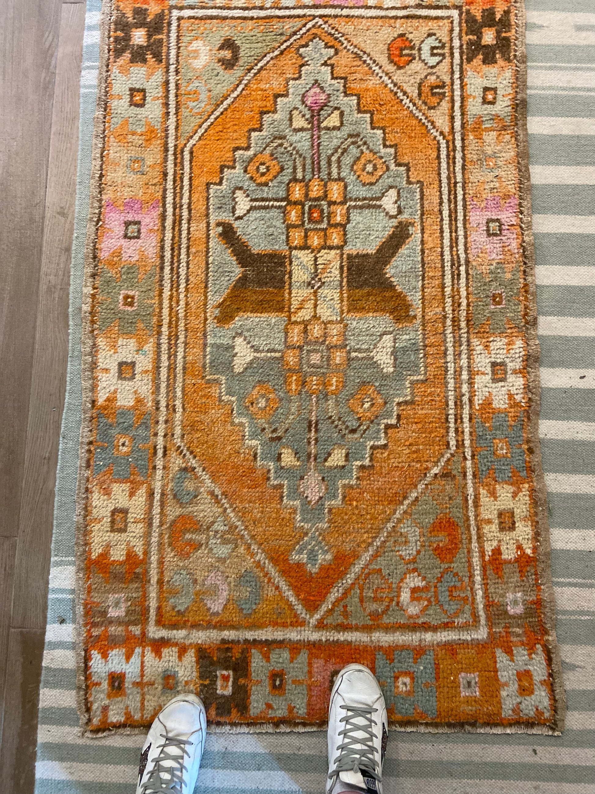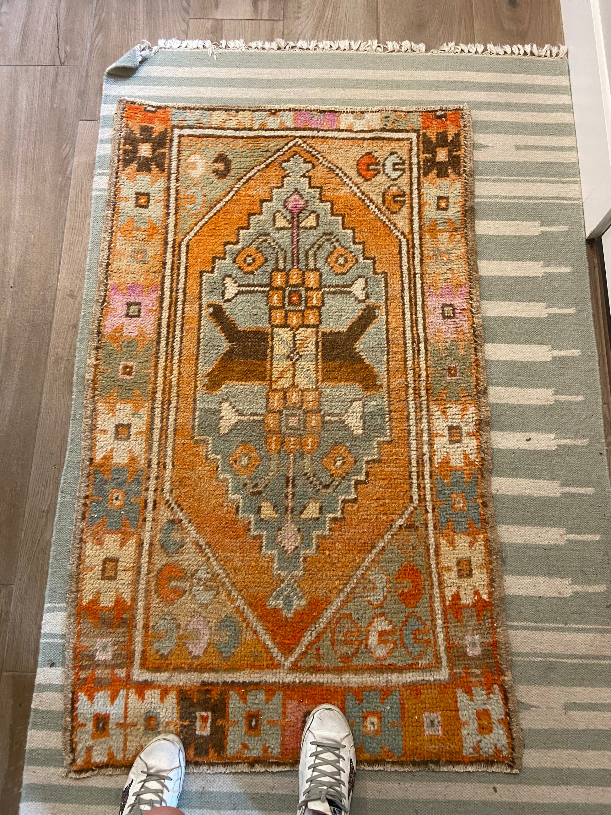 Showstopper, transitional Oushak for small Foyer, entry, or under coffee table to brighten up any mood.